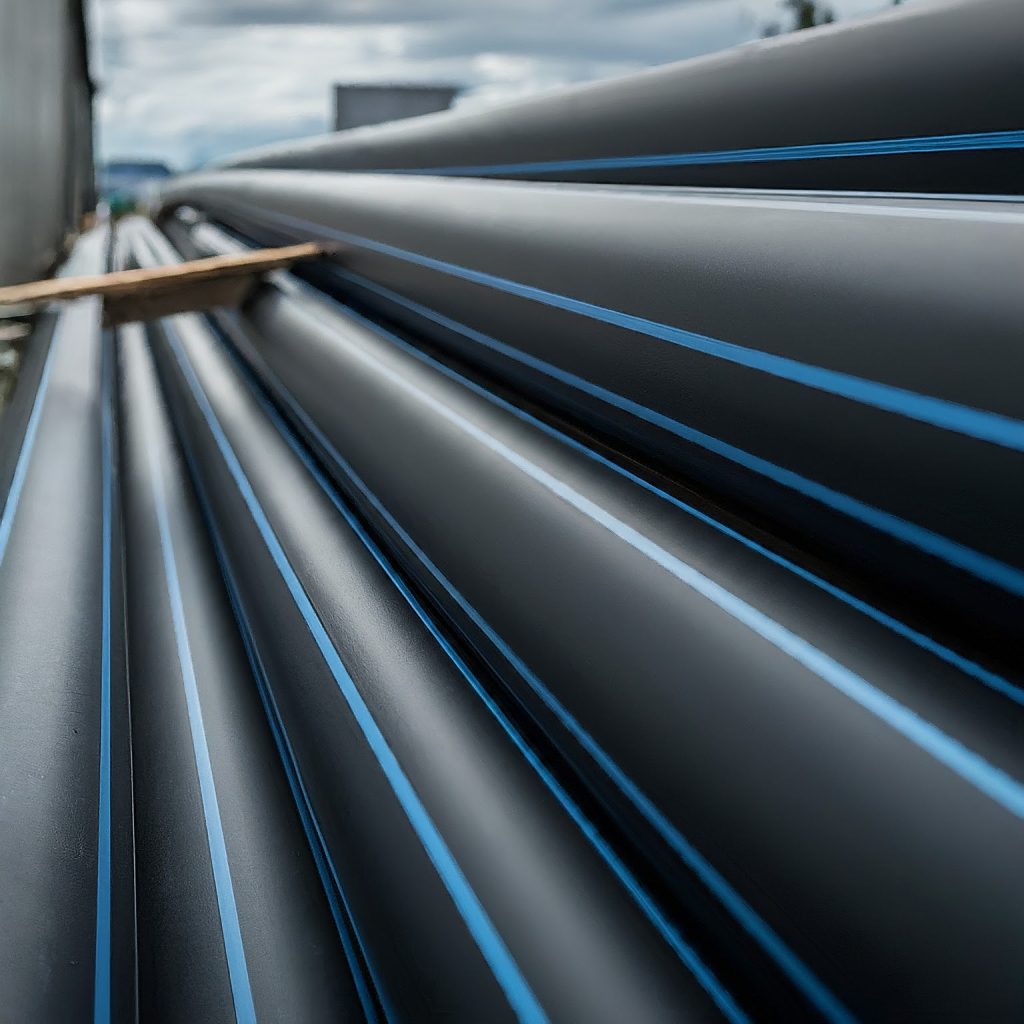 تحتوي مواسير البولي إيثيلين على جزئيات ناعمة من الكربون الأسود والموزعه جيدا كما تحتوى على بوليمرات ومثبتات حرارية منتقاه لضمان مقاومة الطقس بشكل ممتاز بما في ذلك الأشعة الفوق بنفسجية. لتعطى إستقرارا على المدى الطويل بمتوسط العمر المتوقع لأكثر من ٥٠ عاما. كما تظهر مادة البولى ايثيلين مقاومة ممتازة لإنتشار الشقوق السريعة ونمو الشقوق البطيئة مما يعطى فائدة لمواسير الضغط وتعتبر مواسير : 100 PE. مرنة وتمتاز بمقاومة ميكانيكية أكبر مقارنة بالأنواع الأخرى من المواسير.ومن أهم مميزات مواسير البولى ايثيلين المضافة إلى مقاومتها للضغط الهيدروستاتيكى والذى يحدد متوسط العمر المتوقع للمواسير تحت تأثير الضغط الداخلي .